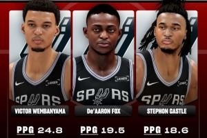 文班亚马:24.8分11.8篮板3.0封盖;