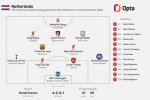 荷兰本年度第5次排出没有荷甲球员首发阵,为之前所有年份之和